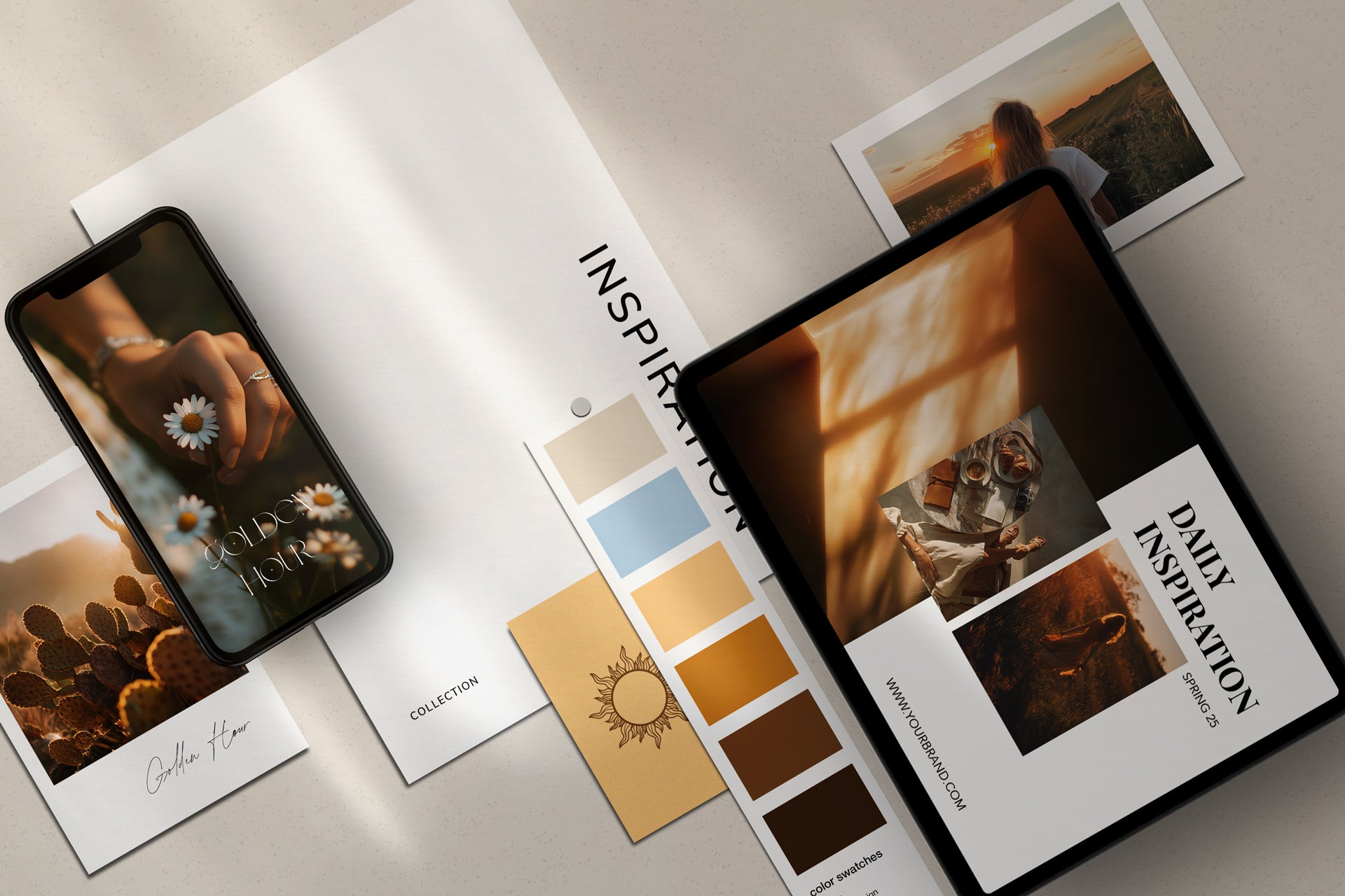 The Golden Hour Collection makes that process beautifully simple. Giving you a ready-to-use visual foundation with an elevated brand kit and curated imagery that creates instant cohesion across your presence.
