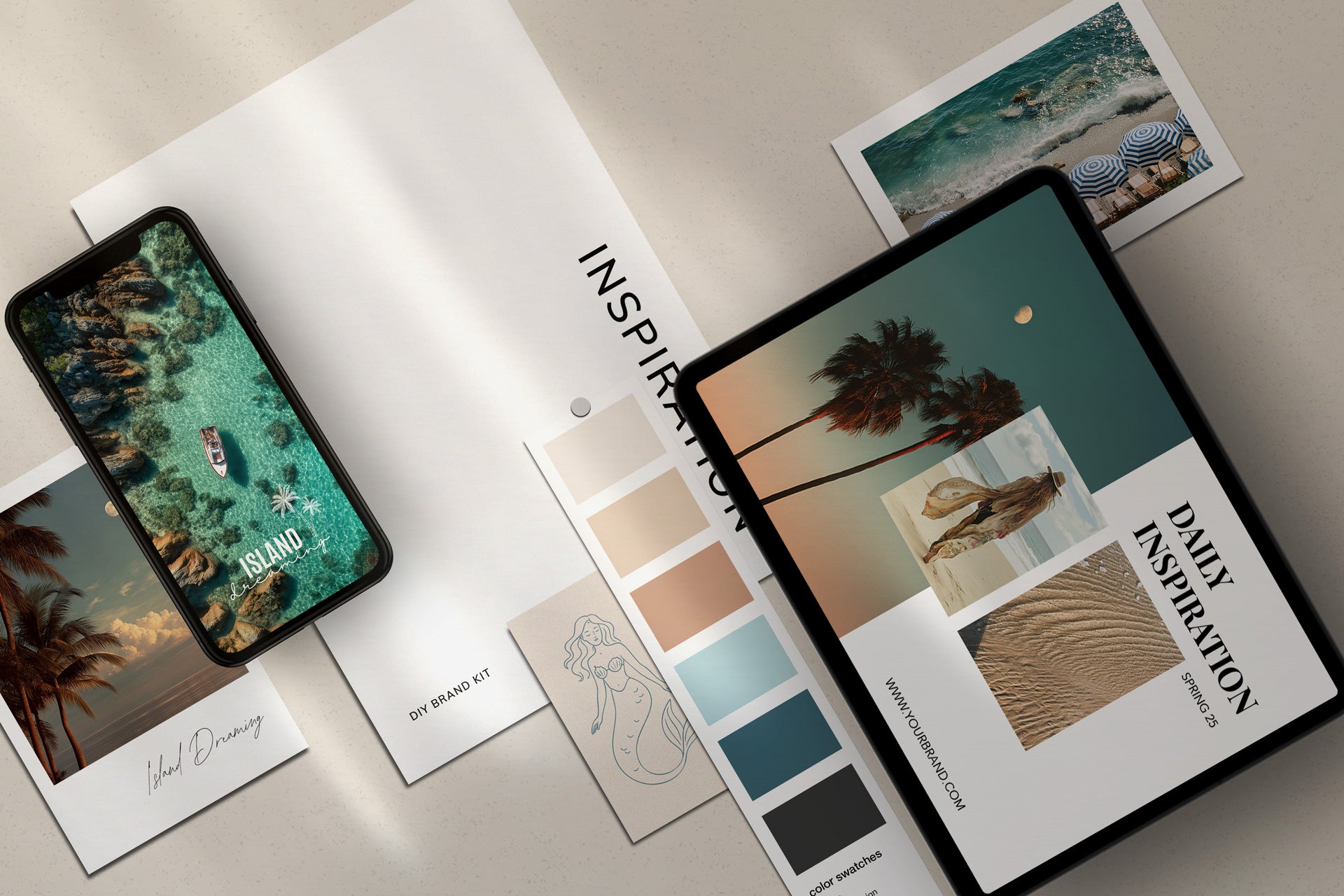 Inspired by sun-drenched days, coastal textures, and the freedom of tropical escape — this collection was designed for creatives, soulful entrepreneurs, and brand dreamers ready to elevate their visual presence with ease and intention.